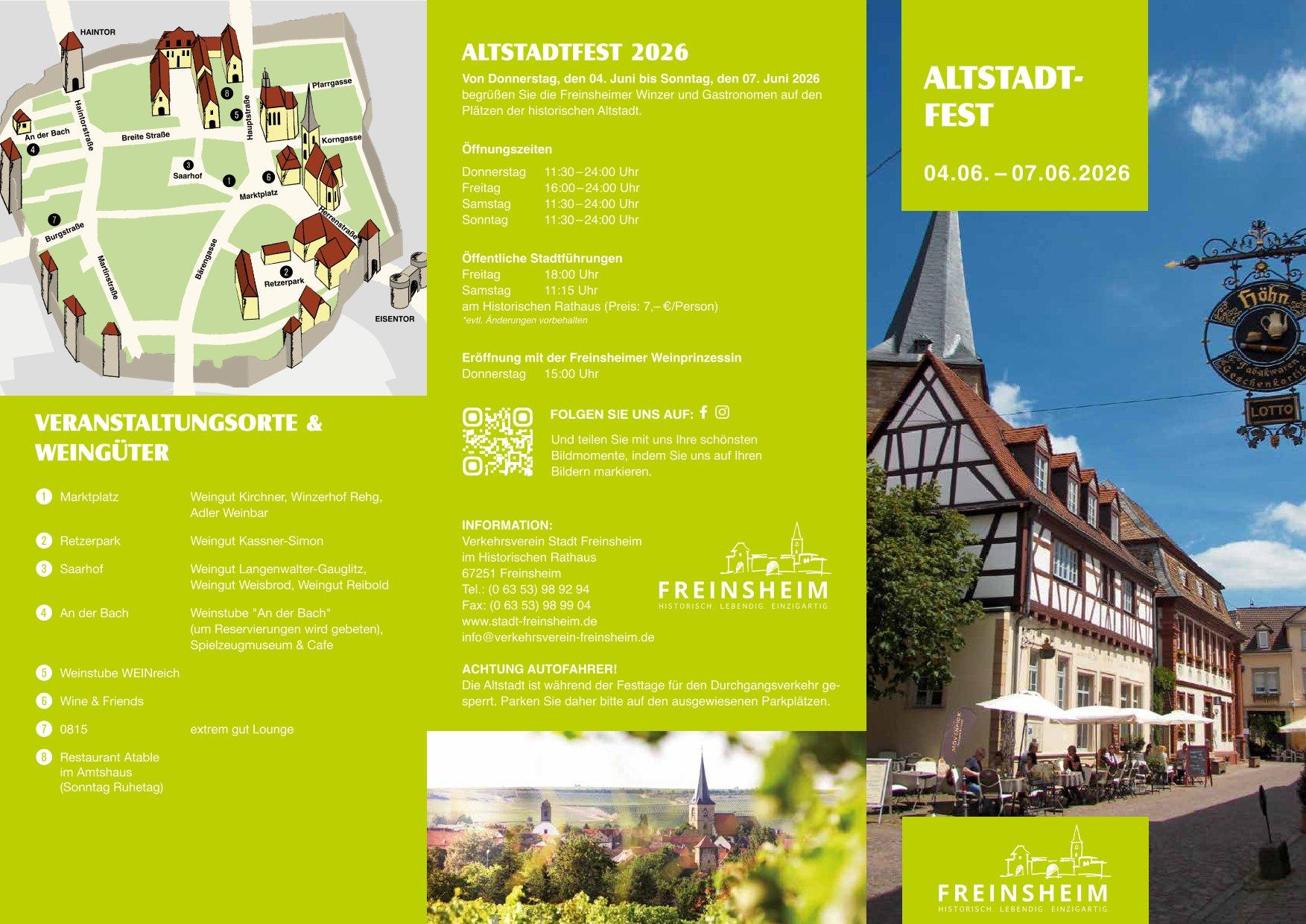 Öffentliche Stadtführungen am Freitag um 18.00 Uhr und samstags um 11.15 Uhr informieren die Gäste über die Geschichte Freinsheims.